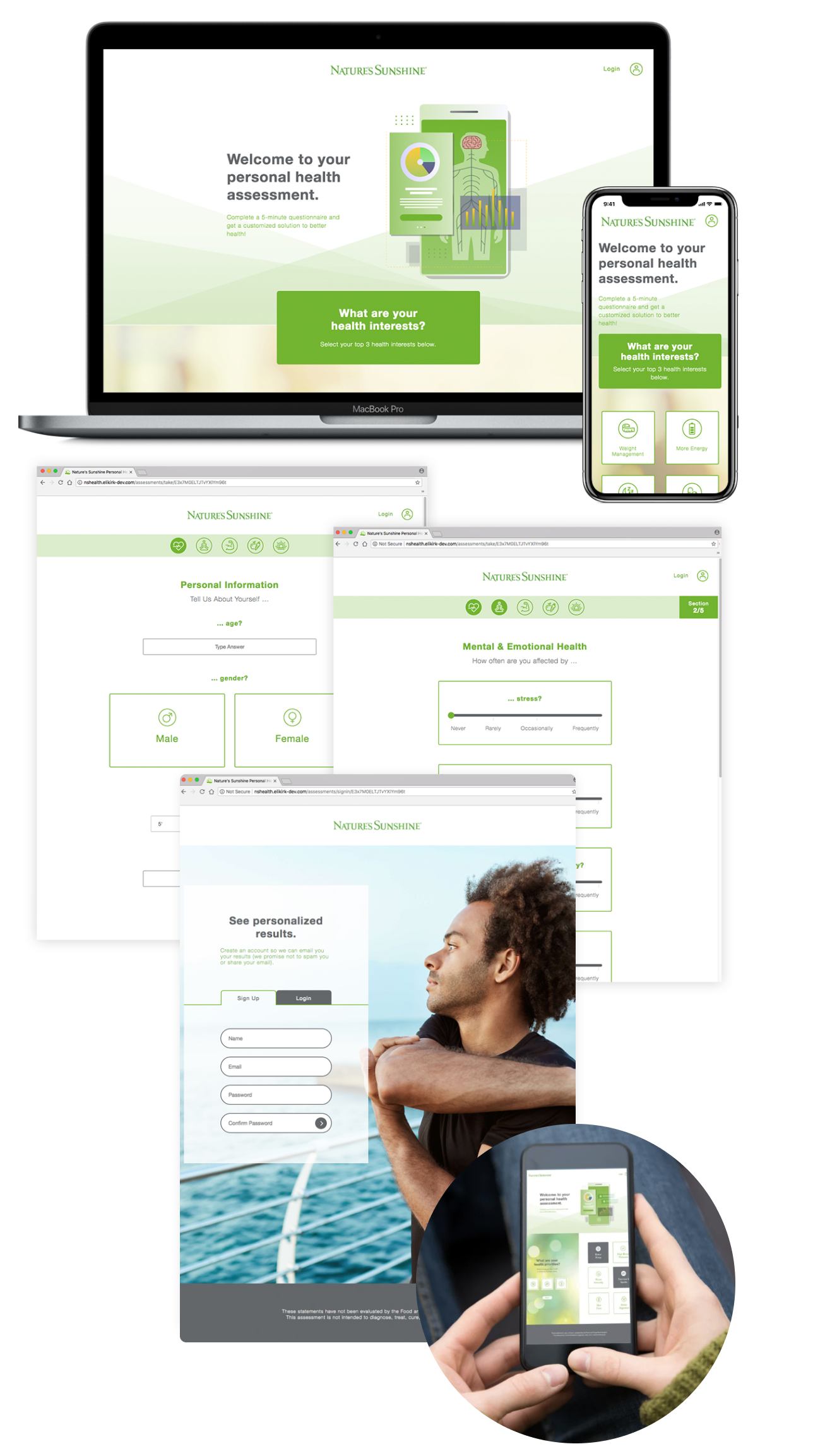 The challenge was balancing a guided, data-driven experience with Nature’s Sunshine’s trusted, wellness-focused brand, while keeping the process approachable and easy to complete.